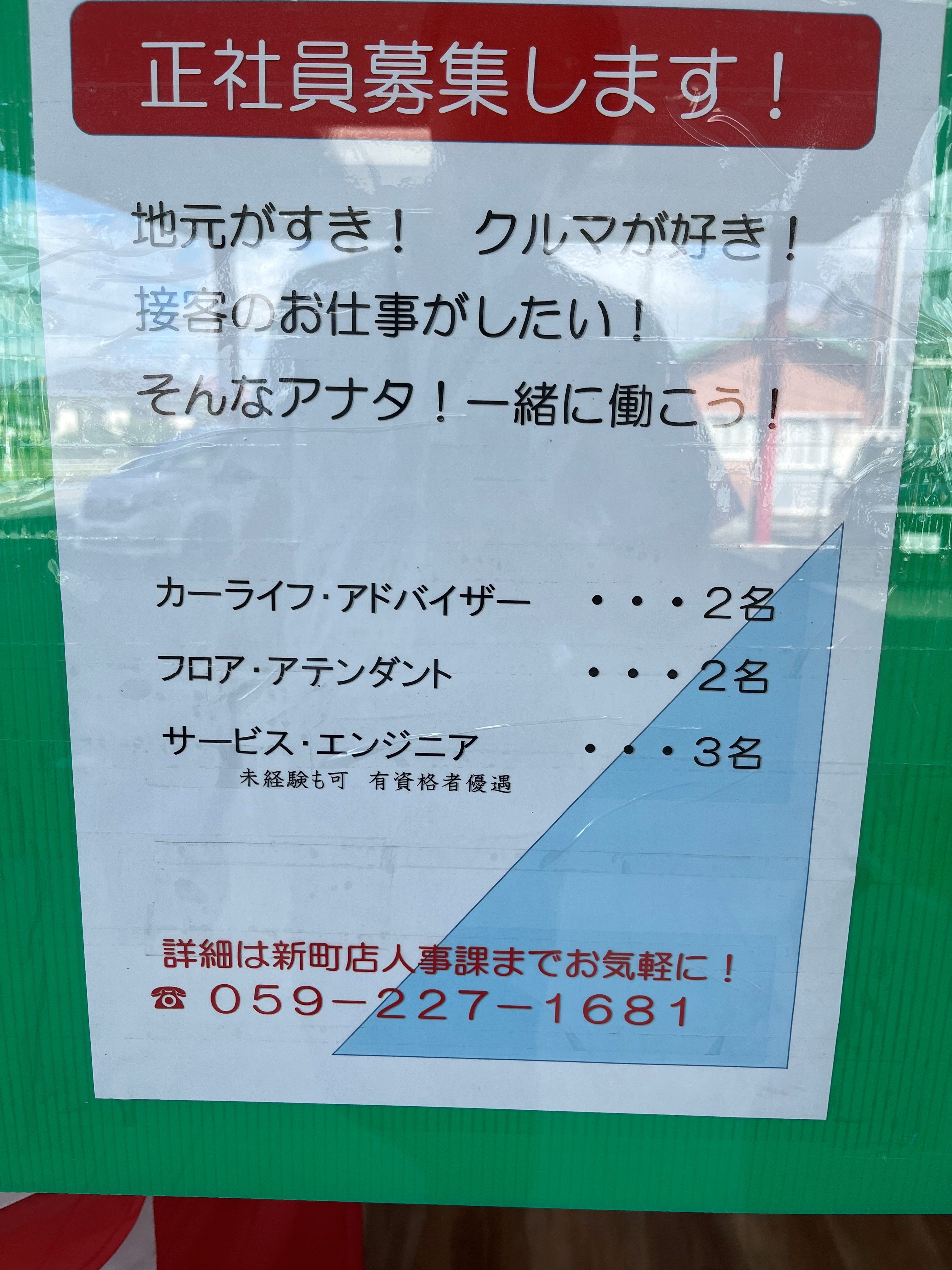クルマがすき!地元がすき!接客のお仕事がしたい!