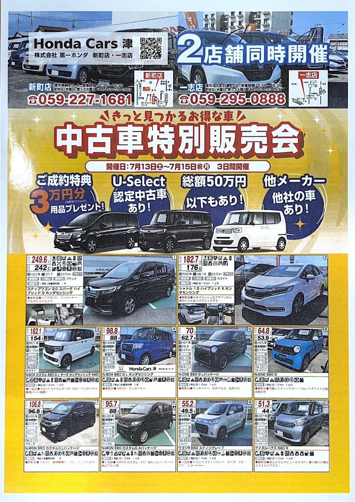 6月も大好評だった月一恒例の「中古車特別販売会」