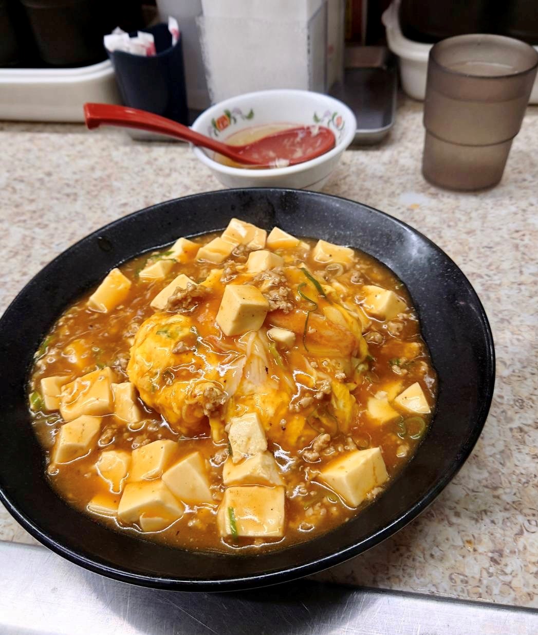 ピリ辛の麻婆豆腐とカニ玉の甘さがクセになる味です。