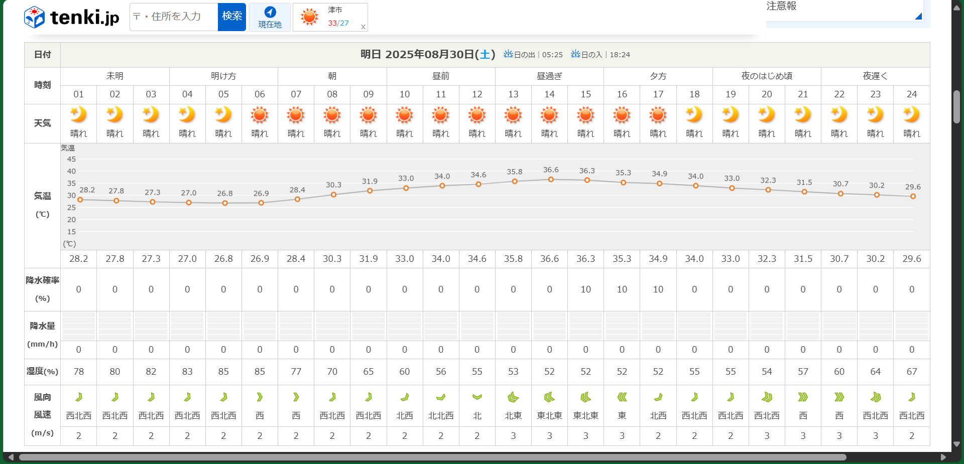 予報にもあるように明日は開催時間の18:00以降も気温が高くなるようです