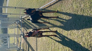 遊んでいたお友達犬を猛スピードで追いかけて