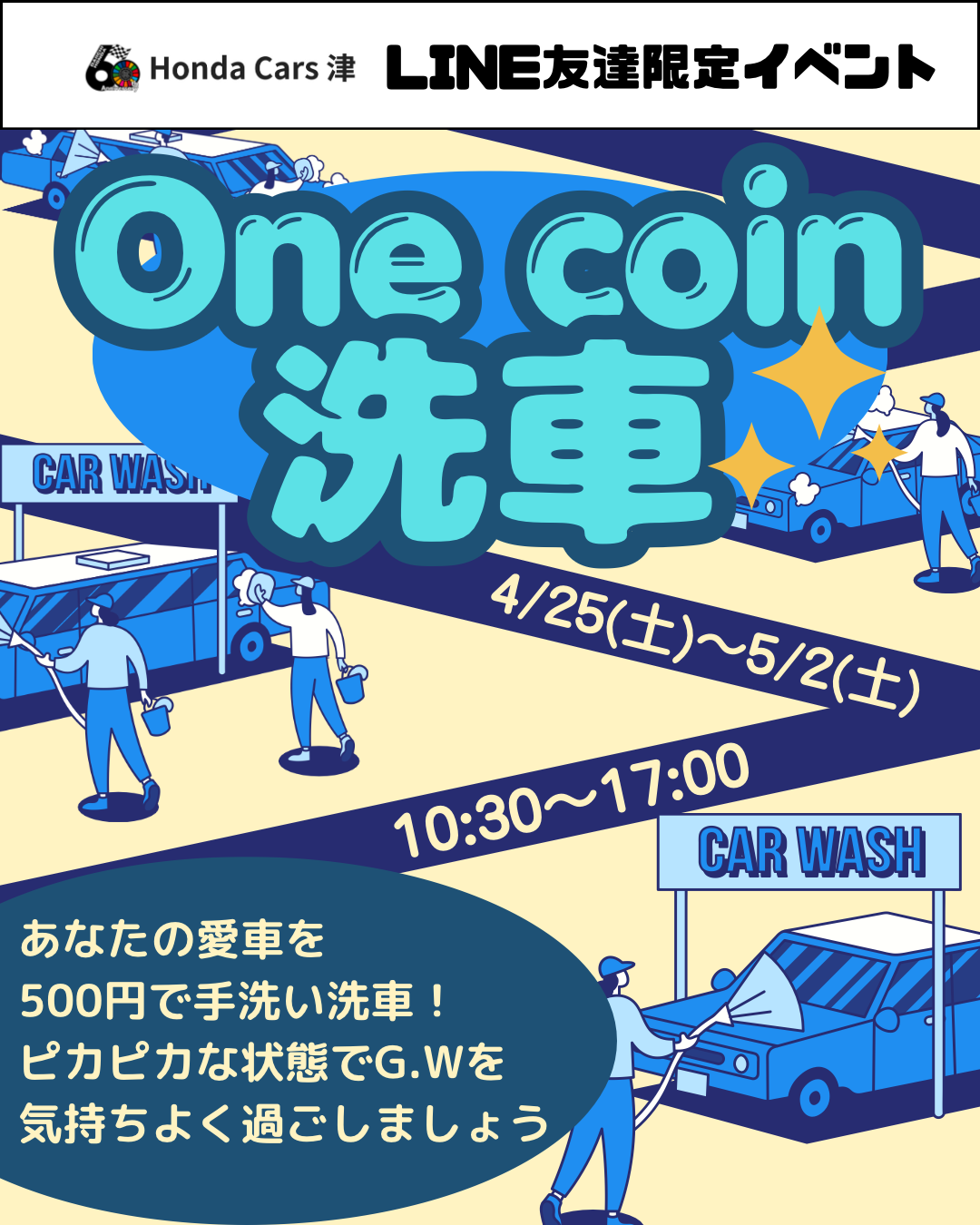 4月LINE友達限定イベント ワンコイン洗車を開催します