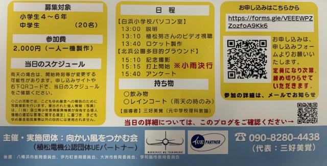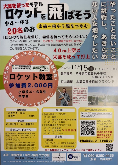 夏休みに開催された「向かい風をつかむ会」様主催のロケット教室がまた開催だそうです!!