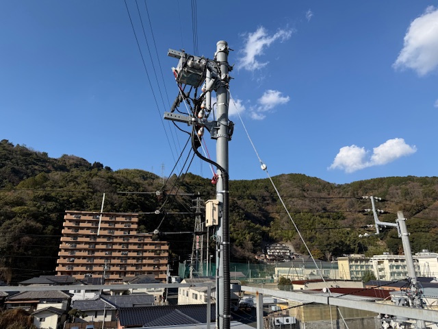 昨年の秋に1回目の工事をしていただき、国道の電柱から当店へ引き込む設備の交換をしました。