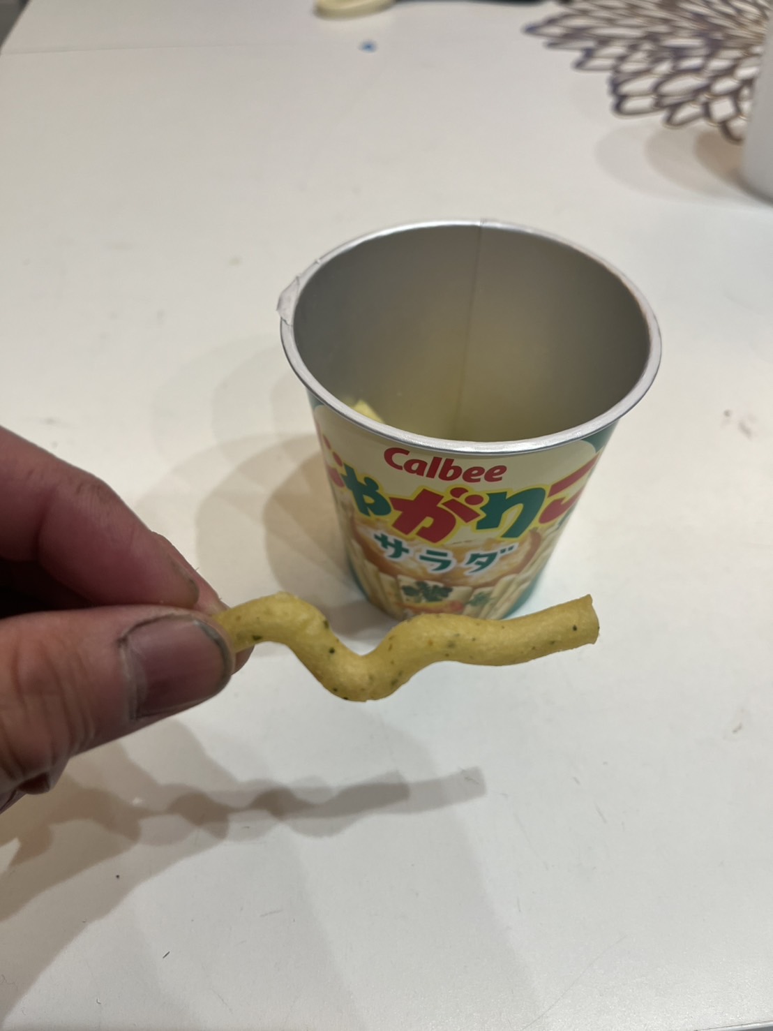 次男の大好きなじゃがりこ。よく食べているのですが、先日食べているときに「何これ!?」と。