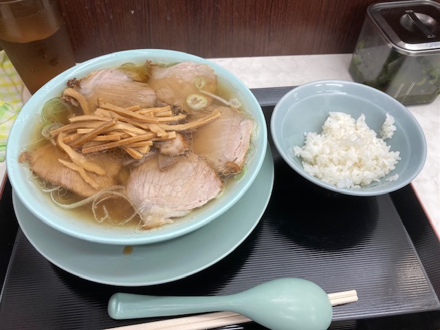 切りたてのチャーシューは、チャーシュー麺にしなくても量はしっかりあり、ライスは一杯無料